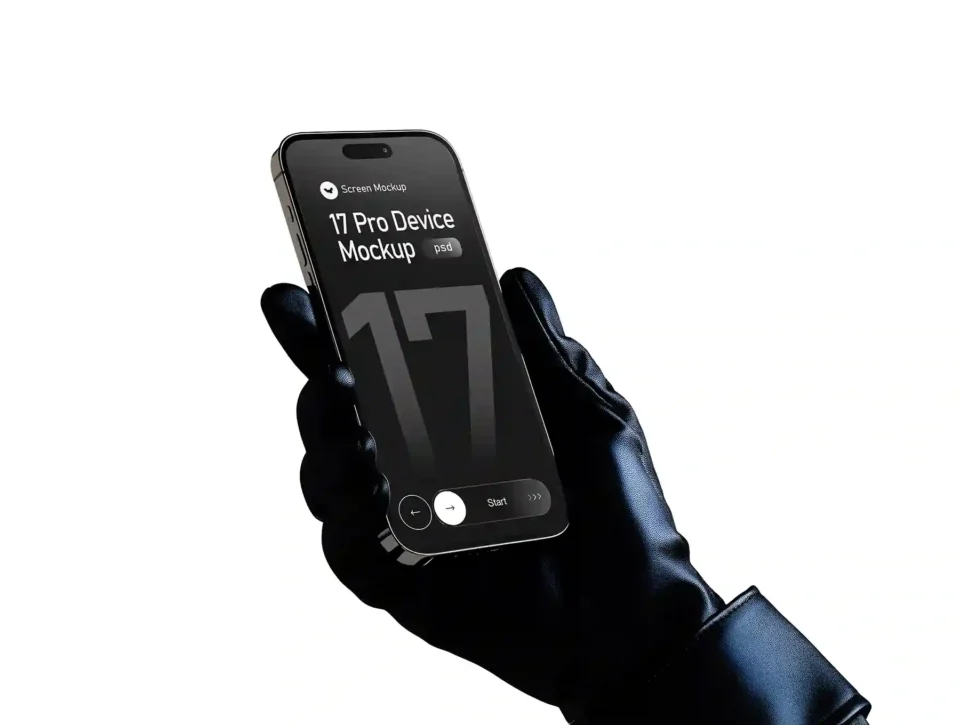 Iphone 17 Pro Max in Hand Wearing Gloves Mockup Set – 09 Scene
