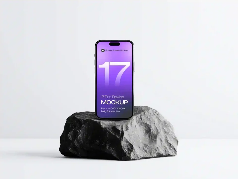 iPhone 17 Pro on Dark Rock Mockup Set – 06 Scene