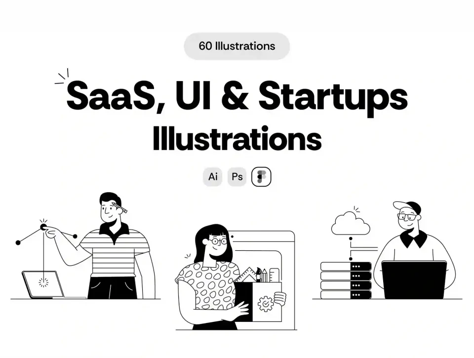 Designed with a clean and minimal black & white style, these illustrations work perfectly for UI design, dashboards, onboarding flows, landing pages, presentations, and marketing websites.