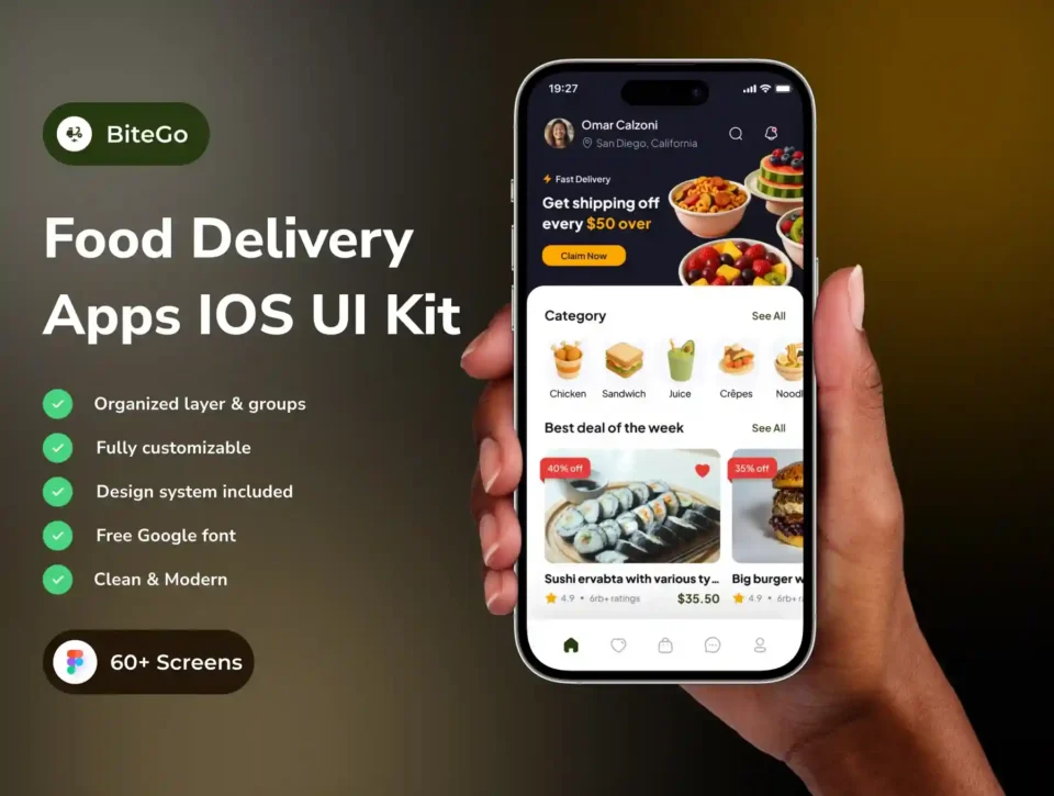 BiteGo is a modern and thoughtfully designed UI kit created for building engaging Food Delivery and Restaurant apps on iOS. With 60+ professionally crafted screens, BiteGo simplifies the process of designing a smooth, fast, and intuitive food ordering experience.
