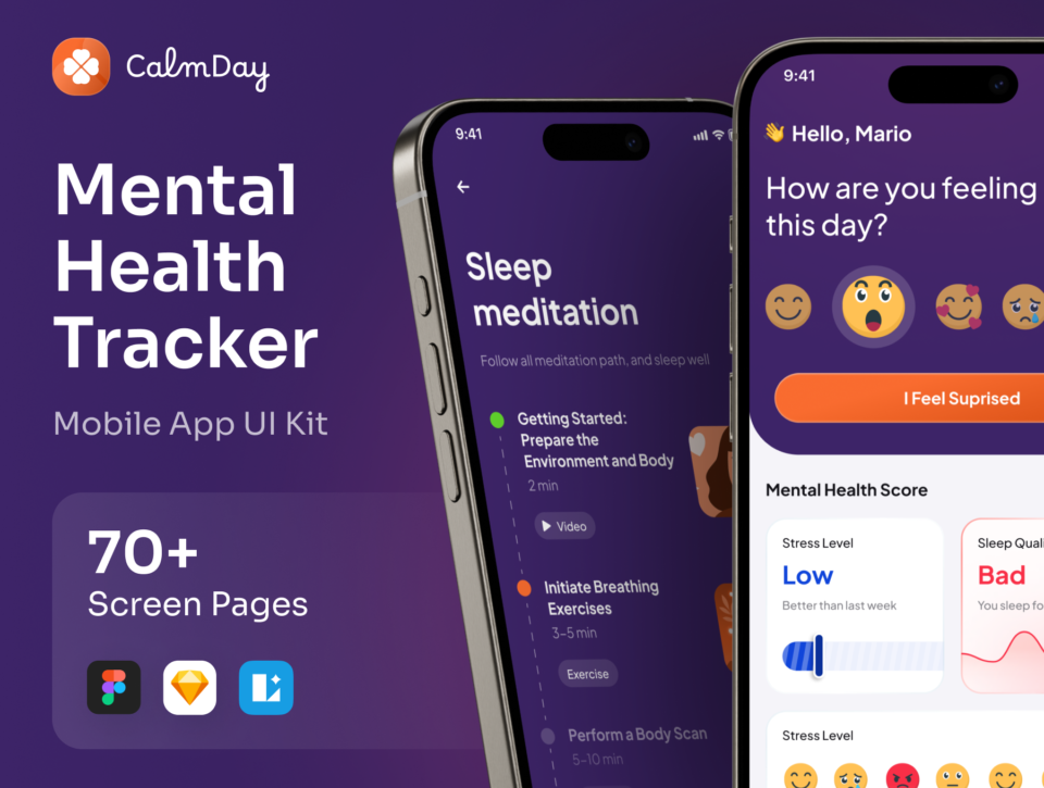 CalmDay – Mental Health Tracker Mobile App UI Kit