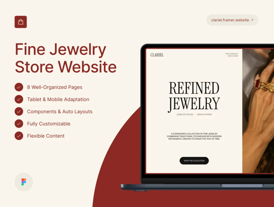 Clariel is a luxury jewelry store website designed around an editorial landing page and thoughtfully structured product pages. Created for modern and refined brands, it focuses on clarity, balance, and elegant product presentation. The website blends brand storytelling with a curated shopping experience, offering a calm and confident foundation for showcasing jewelry collections.