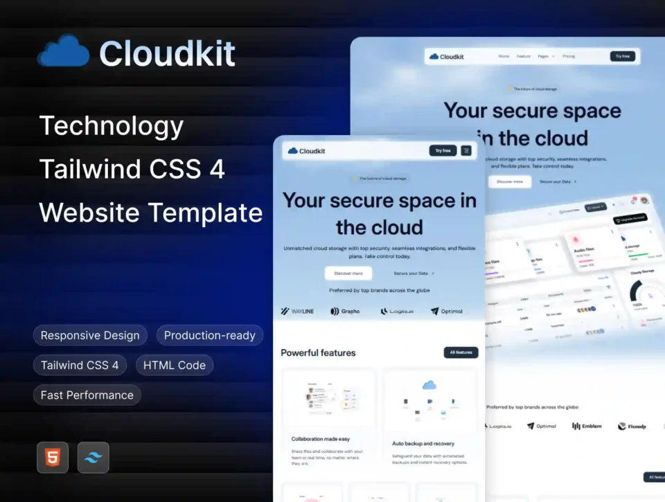 Cloudkit is a modern and thoughtfully crafted SaaS and startup template built with the latest Tailwind CSS 4 and powered by Vite ⚡ for a fast, efficient development experience.