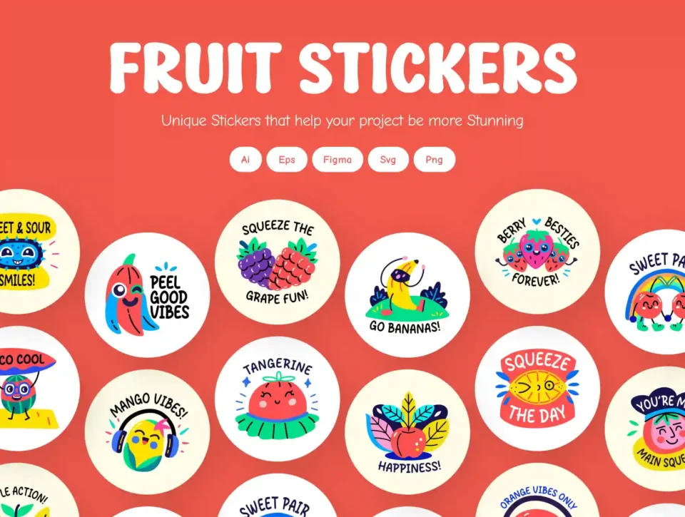 Add a burst of fun and freshness to your designs with this cool fruit stickers collection! Perfect for branding, packaging, planners, greeting cards, scrapbooking, and social media posts, these vibrant and playful fruit stickers bring creativity to life. Whether you’re creating fun DIY crafts, customizing labels, or enhancing your marketing materials, these adorable fruit characters add a delightful touch to any project!