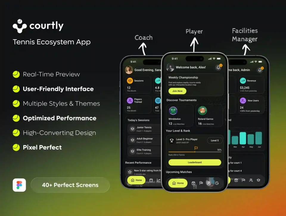 Courtly is an end-to-end digital platform designed for tennis, padel, and racket sports facilities to manage their entire ecosystem from a single place.