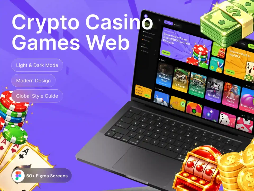 This modern casino and crypto betting web UI kit is designed for building immersive online gaming platforms, sports betting products, and blockchain-based casino experiences.
