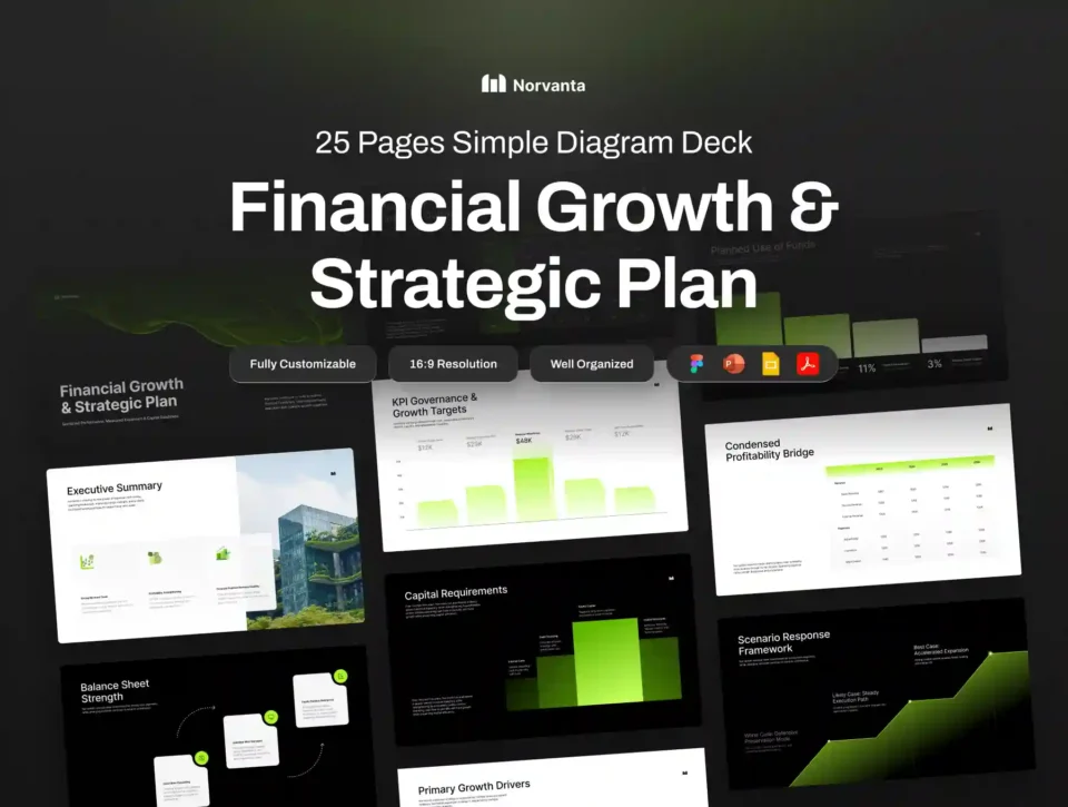 Elevate your presentations with Norvanta, a cutting-edge Figma-powered pitch deck designed for finance, business, and company. Featuring a sleek, minimalist aesthetic, this dynamic template is fully customizable with your brand colors, ensuring a professional and visually striking pitch every time.