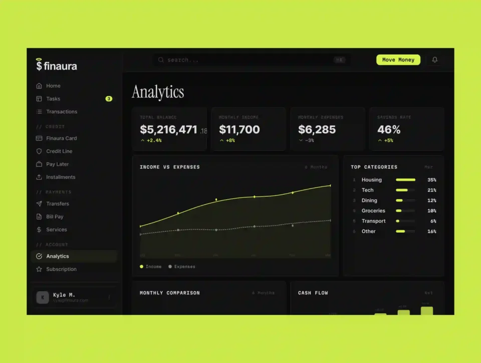 Finaura is a meticulously crafted finance dashboard UI kit built for fintech startups, neobanks, and SaaS products. With 60 ready-to-use screens spanning every core banking flow — from onboarding to analytics — Finaura gives you a production-grade foundation to build on.
