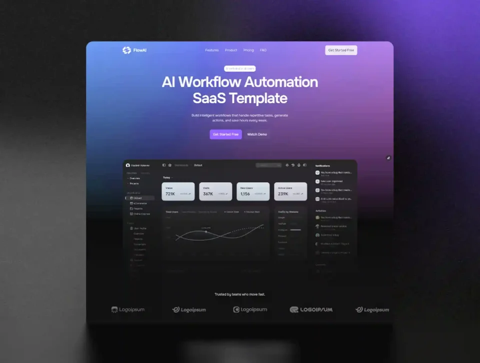 FlowAI is a premium AI SaaS website template built in Framer, designed for startups, automation tools, and modern tech products.