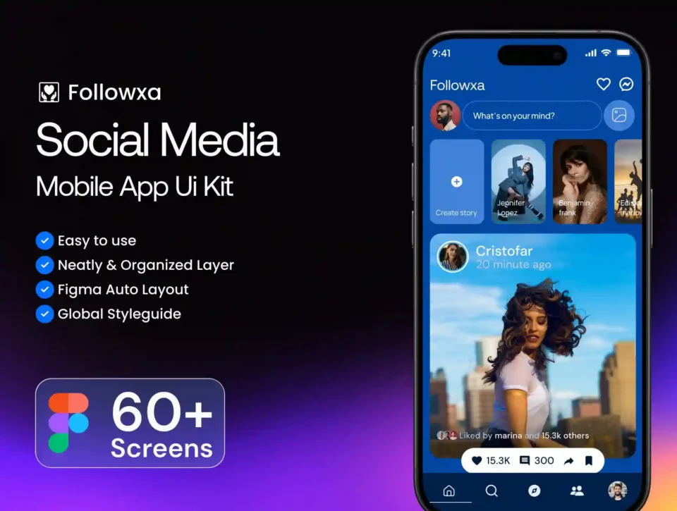 Followxa is a modern and engaging Social Media Mobile App UI Kit designed to help designers and startups build powerful social networking platforms with ease. Featuring a clean interface, smooth user experience, and well-structured layouts, Followxa provides everything needed to create a dynamic social media application.