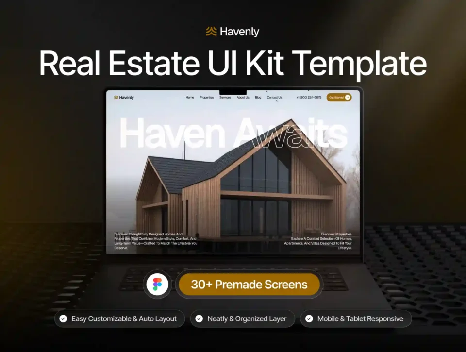 Havenly – Real Estate Website UI Kit is a premium and thoughtfully designed UI kit built for modern real estate businesses, property agencies, and listing platforms. With a trendy, clean, and professional visual style, Havenly helps you create a strong digital presence that builds trust and drives conversions.
