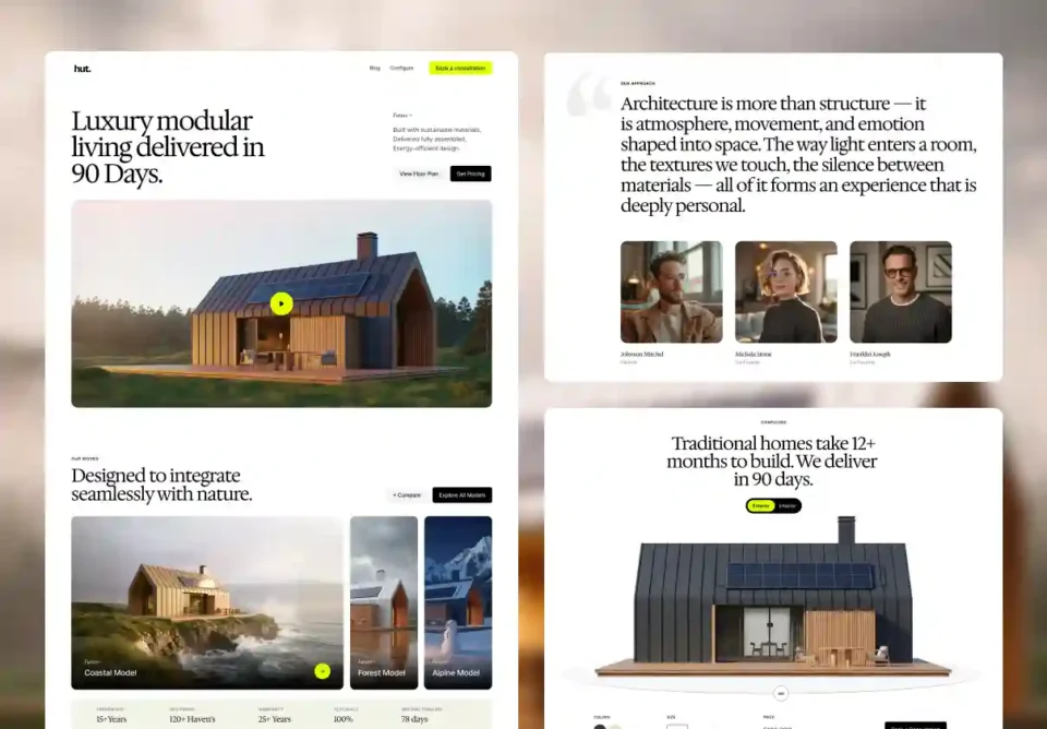 Hut is a high-end Framer template crafted for modular architecture studios, prefab home brands, and sustainable living companies. Designed with a calm Scandinavian aesthetic, it combines immersive visuals, thoughtful typography, and modular layout systems to showcase modern architectural products with clarity and elegance.