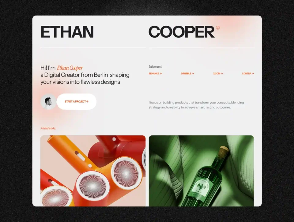 Innoform is a clean, minimal one-page portfolio template: perfect for product, UI, and UX designers, as well as other creatives.