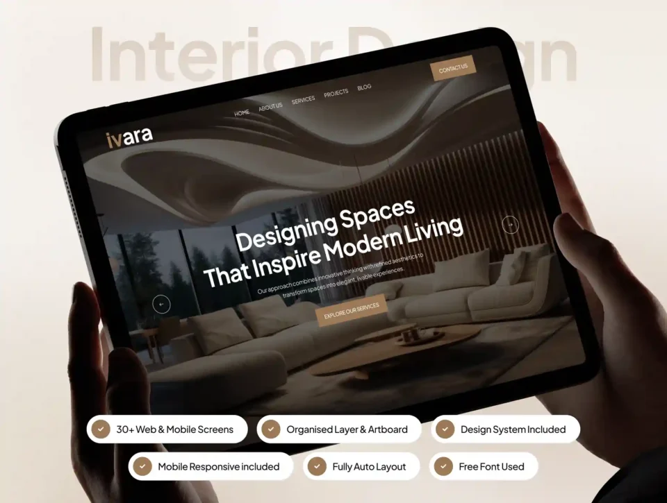 ivara – Interior Design Website UI Kit is a premium design resource featuring over 30+ carefully crafted, mobile-responsive screens. This UI Kit Includes mobile responsiveness, and a clean user-friendly interface to create seamless interior designer experiences across devices.