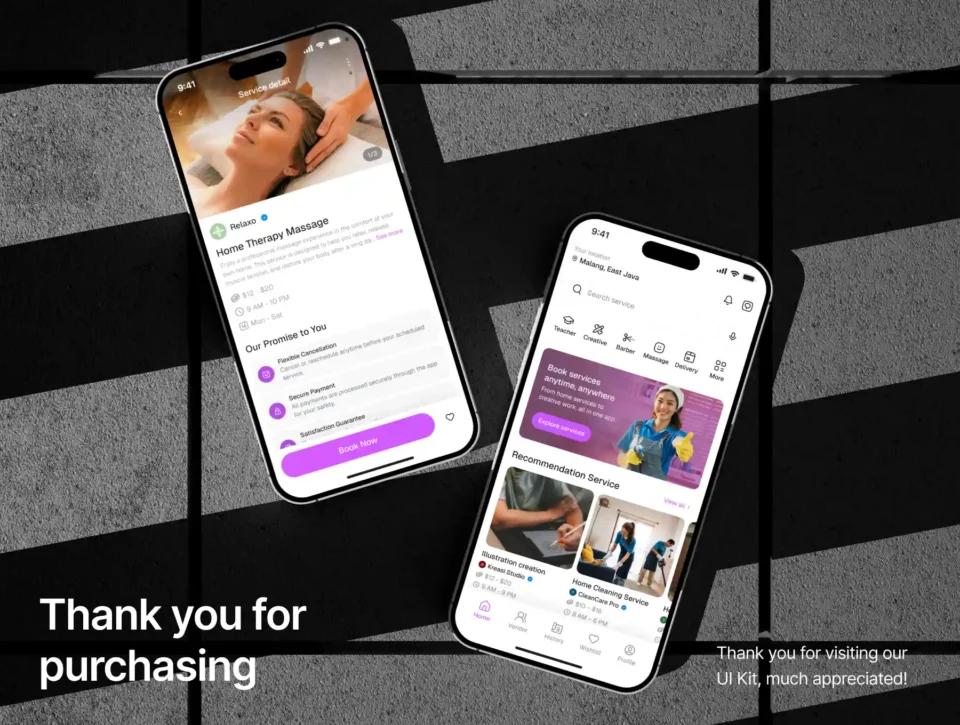 Lemontada – Service Mobile App UI Kit is a modern, clean, and well-crafted mobile UI kit designed for on-demand service booking platforms. Built to support a wide range of services—from home cleaning, massage, barber, creative work, to professional services—this UI kit delivers a seamless and user-friendly booking experience.