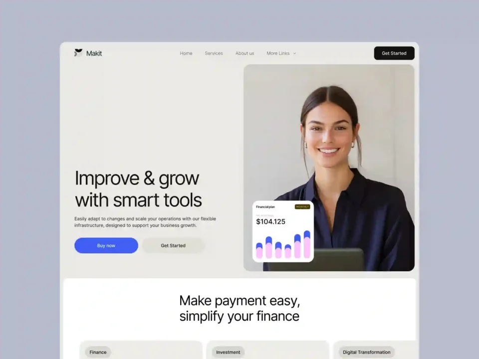 Makit is a Webflow template specifically designed for finance and accounting professionals or businesses looking to establish a modern and trustworthy online presence. Perfect for accounting firms, financial advisors, and bookkeeping services, Makit offers a flexible and customizable structure, allowing you to easily adapt all components to meet your business needs.