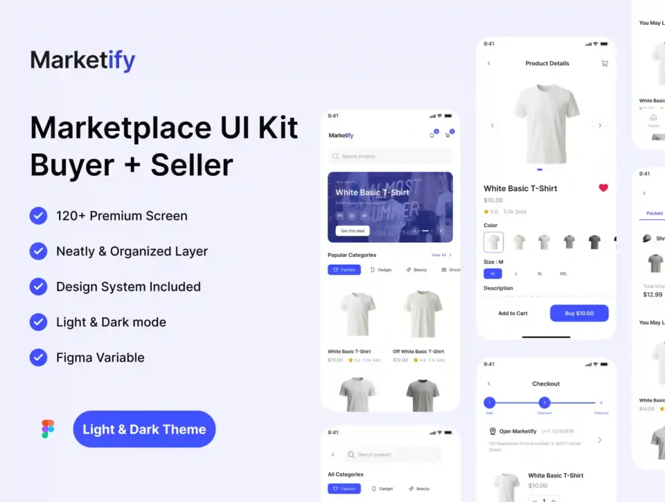 Marketify is a modern mobile marketplace UI kit designed to help designers, startups, and product teams build scalable marketplace apps faster.