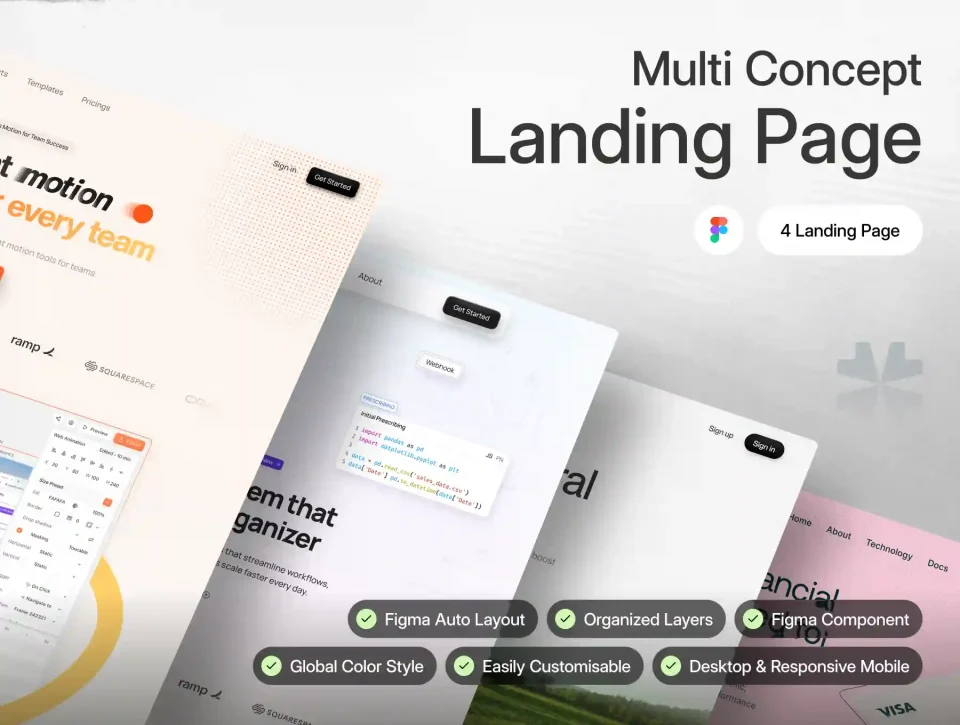 Meet our Multi Concept Landing Page 2, a minimal and trendy UI kit built to help you design stunning SaaS websites effortlessly. Each layout is thoughtfully crafted to combine clarity, performance, and flexibility, making it the perfect foundation for startups, agencies, and modern digital products.