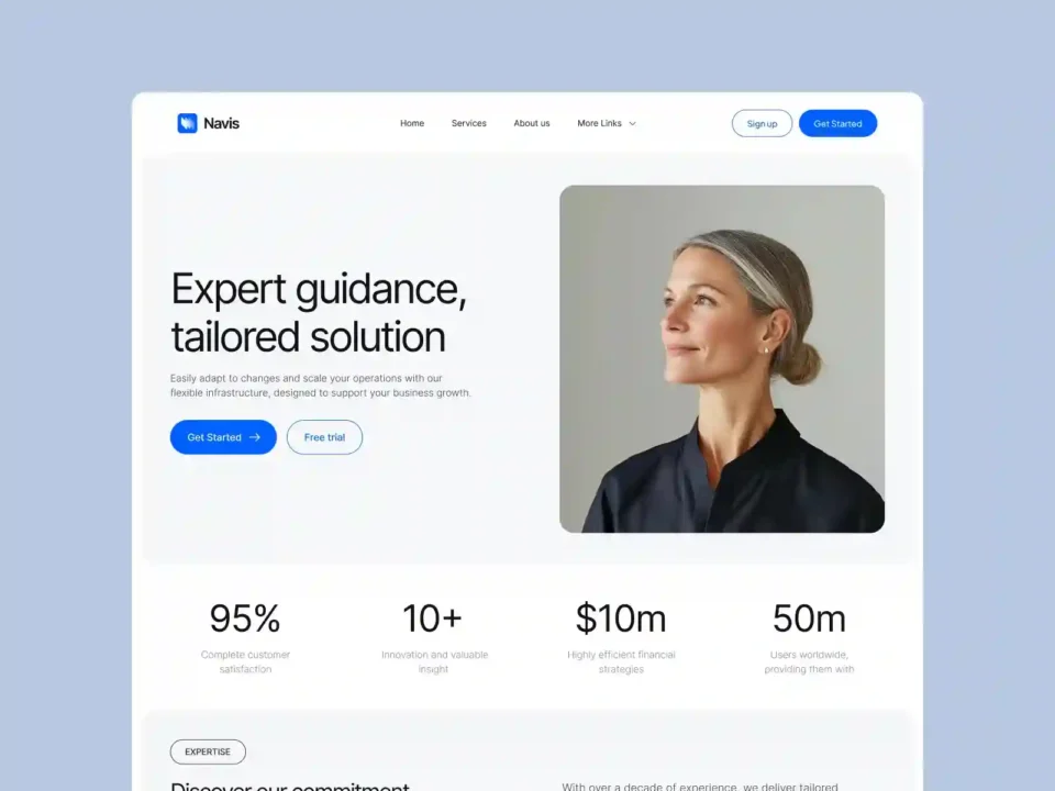Navis is a Webflow template designed for consulting firms and SaaS businesses looking to showcase their services and success stories with a professional and modern touch. Perfect for financial consultants, tech companies, and business strategists, Navis offers a flexible and customizable structure that allows you to easily adapt all components to meet your business needs.
