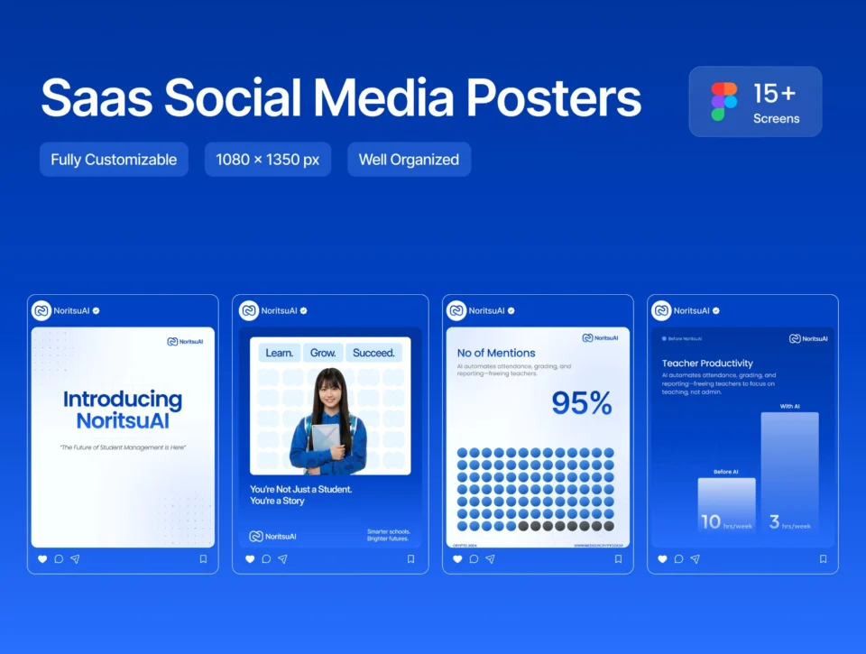 A sleek, high-impact social media poster kit designed for SaaS product launches, feature highlights, user growth showcases, and brand storytelling. This template is perfect for creative professionals, marketing teams, and startups looking to create visually stunning and data-driven content for their social media campaigns.