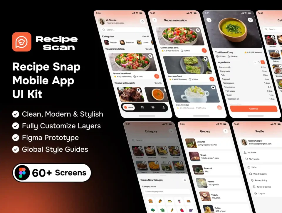 Recipe Snap blends clean food-focused layouts with intuitive browsing and search flows, helping users discover recipes, save favorites, plan meals, and cook with confidence. Every screen is designed to make recipes easy to explore while keeping the experience visually rich and easy to use.