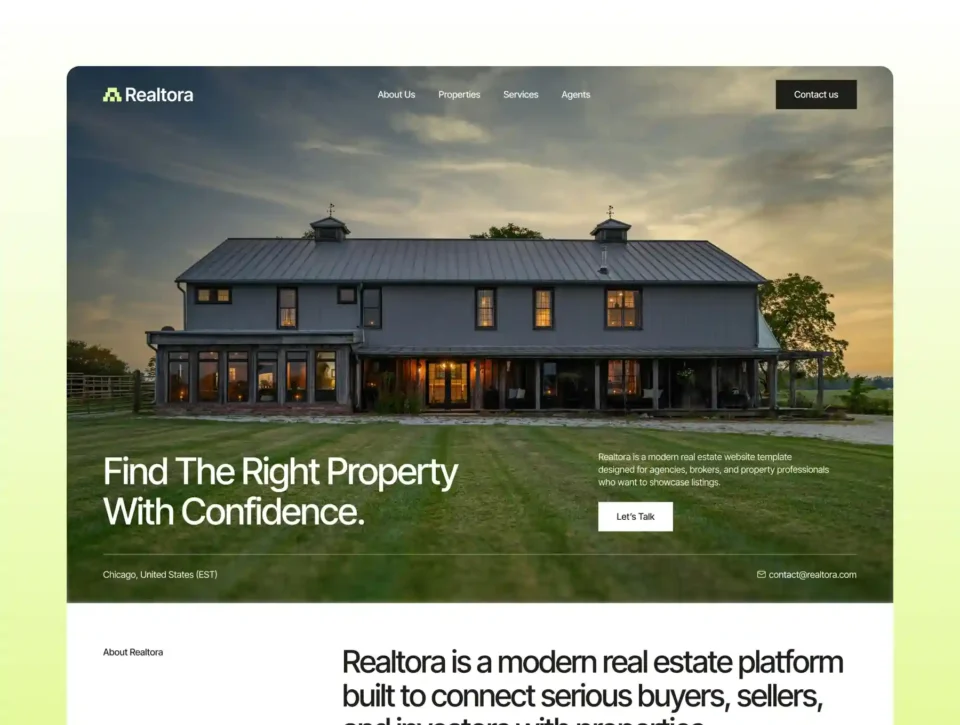 Relatora is a modern and visually polished real estate website template designed for agencies, realtors, and property management businesses. It helps showcase property listings, agents, and detailed property pages in a clean and professional layout.