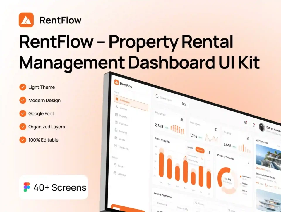 RentFlow is an advanced and intelligent Property Rental Management Dashboard UI Kit, crafted to help property owners, managers, and teams manage rentals with clarity and efficiency. Built for modern SaaS platforms, real estate tools, and rental marketplaces, RentFlow blends smart management features with clean UI design to streamline every aspect of property operations.