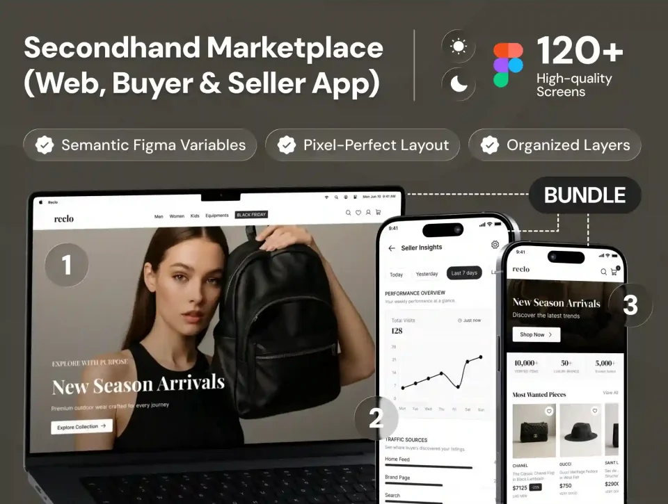 Secondhand Marketplace UI Kit Bundle is a complete design solution for building resale and preloved platforms across web and mobile.