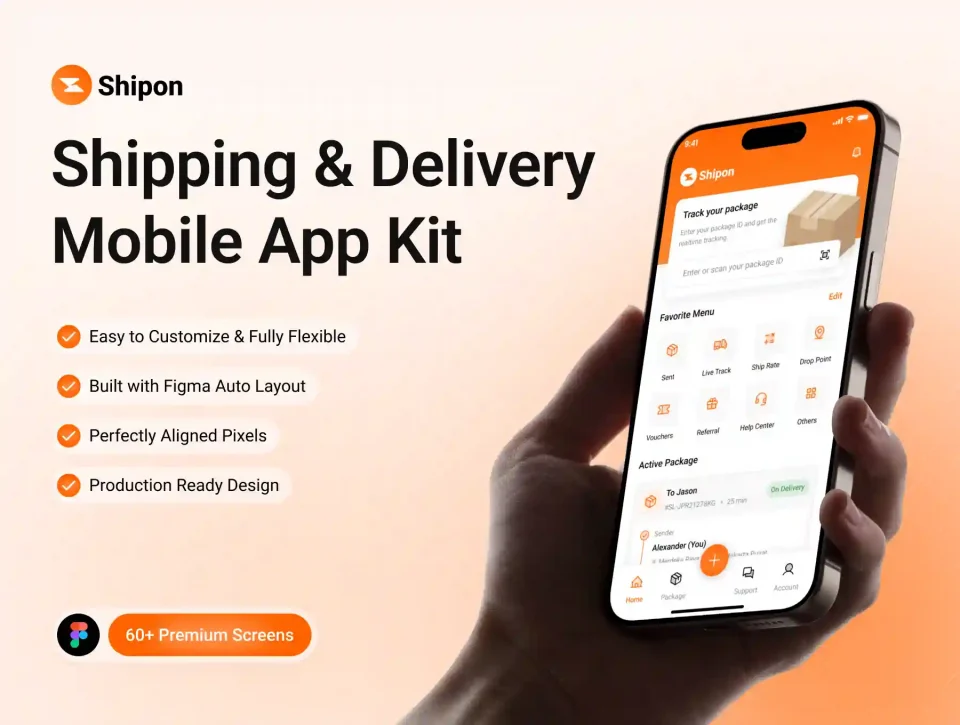 Shipon is a modern and efficient mobile app kit designed for shipping, courier, and logistics applications. Crafted with a clean, professional interface and a focus on clarity, Shipon helps users send packages, track deliveries, and manage shipments with ease and confidence.