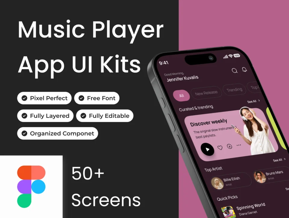 Soundly Minimalist design UI Kits for Music Player Apps with 50+ screens. has been equipped with grouping and naming for each group so that you can edit it more easily. with this UI Kit it will make it easier and faster to work on your personal project.
