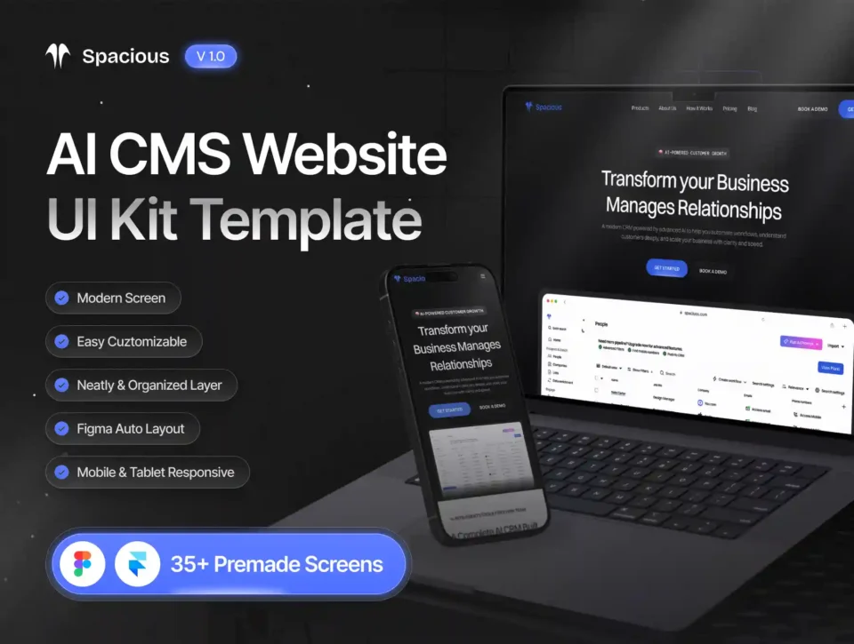 Spacious – AI CMS Website UI Kit is a powerful and flexible UI kit crafted for modern SaaS, AI, and CMS-driven products. Designed with clarity, scalability, and speed in mind, it helps teams build intelligent platforms without sacrificing visual quality or consistency.