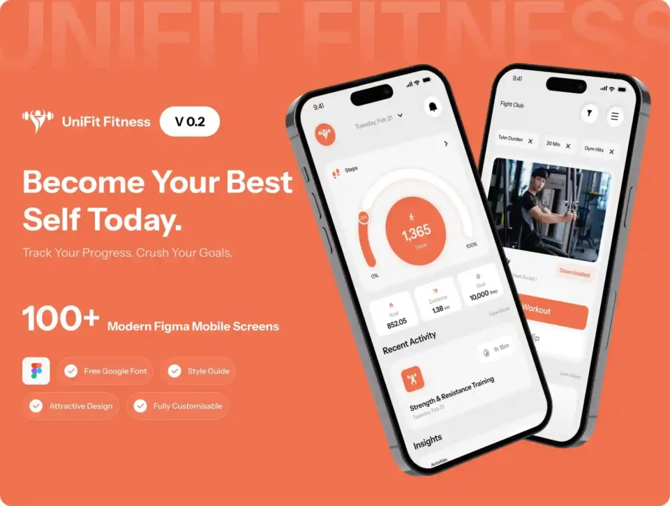 UniFit Fitness is a meticulously crafted mobile UI kit built for athletes, fitness coaches, and health-tech innovators. Whether you are building a calorie tracker, a personalized workout trainer, or a social fitness community, UniFit provides the professional, data-driven foundation you need to move from concept to launch faster.