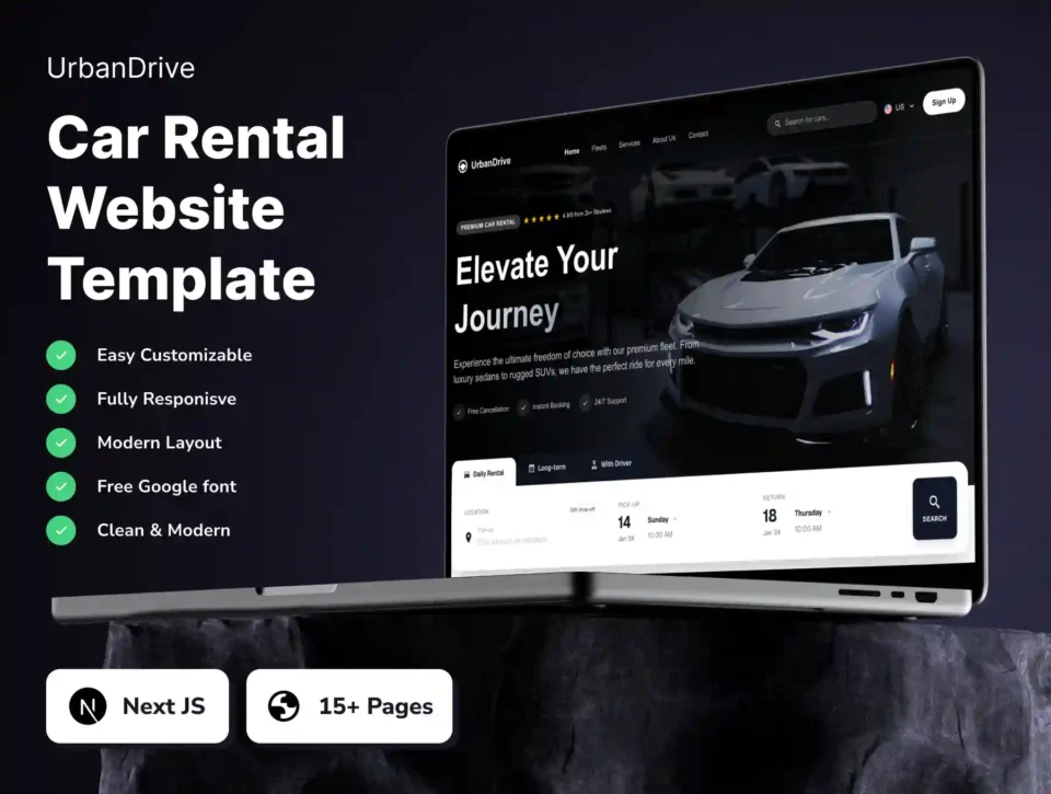 UrbanDrive is a modern and professional Car Rental Website Template built with Next.js, designed specifically for car rental companies, vehicle leasing services, chauffeur providers, and mobility startups. It focuses on clean layouts, strong visual clarity, and fast performance—making it ideal for showcasing vehicle fleets, rental packages, and booking services with confidence.