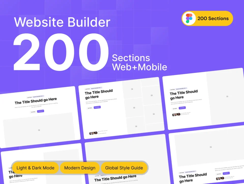 This Website Builder Sections UI Kit is a flexible collection of 200 website blocks designed for both web and mobile layouts, allowing designers to quickly build modern websites and landing pages.