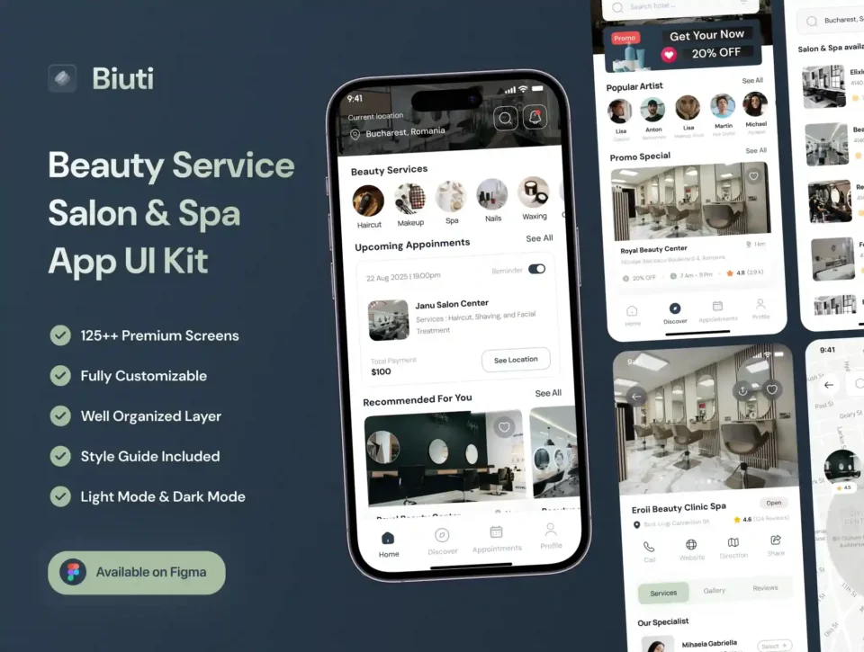 Biuti – Beauty Service Salon & Spa Mobile App UI Kit