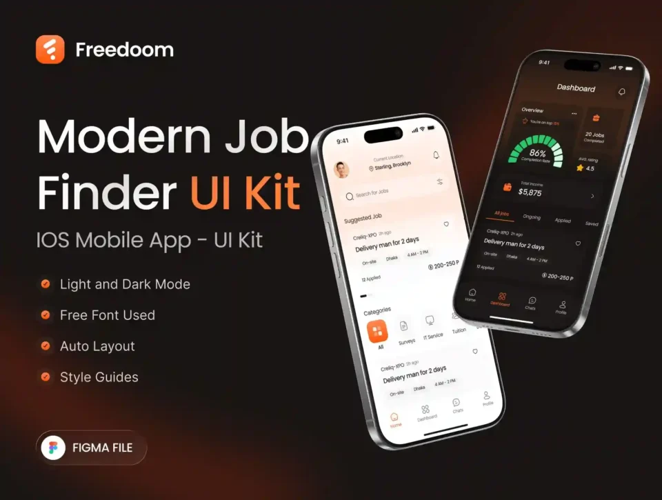 Freedoom – Part Time Job Finder App UI Kit