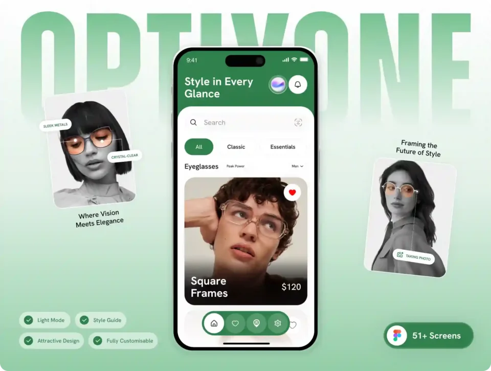 OptixOne – Figma Eyewear App UI Kit | Mobile Ecommerce Glasses Store Template