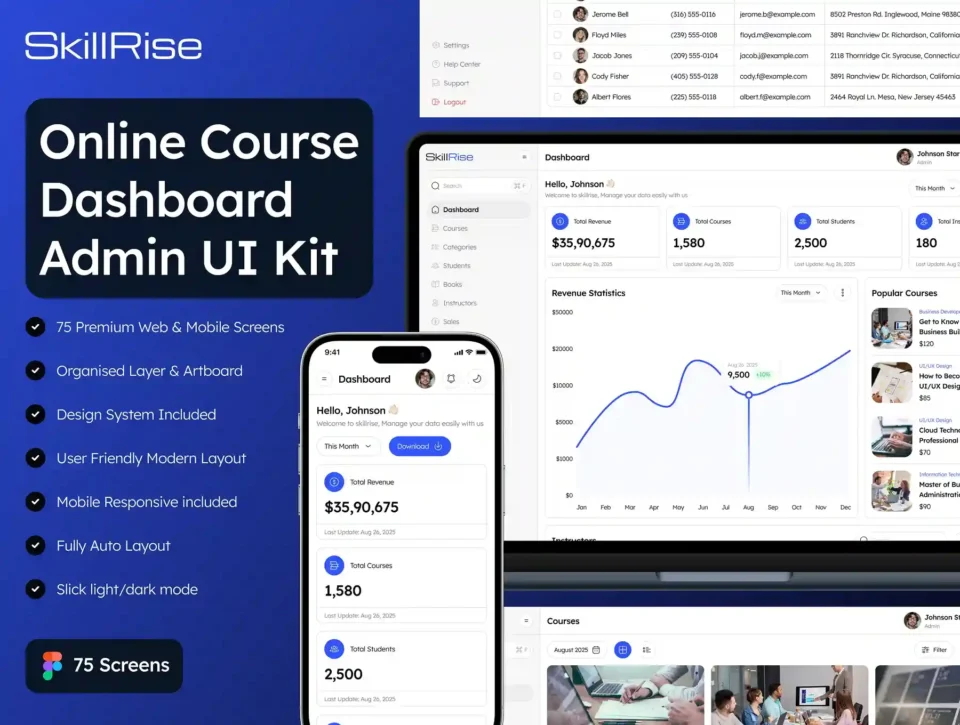 SkillRise – Online Course Dashboard Admin UI Kit