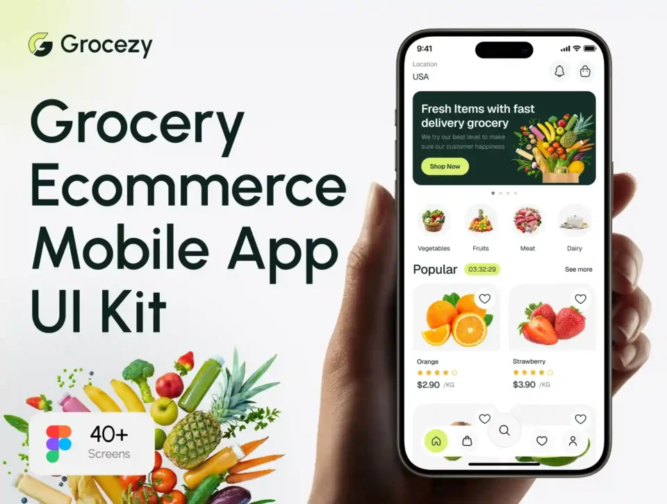 Grocezy – Grocery Ecommerce Mobile App UI Kit
