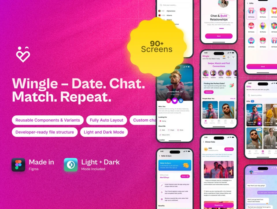 Wingle – Modern Dating App UI Kit (Light & Dark)