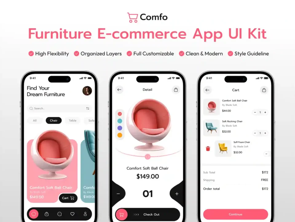 Comfo – Furniture Ecommerce Mobile UI Kit