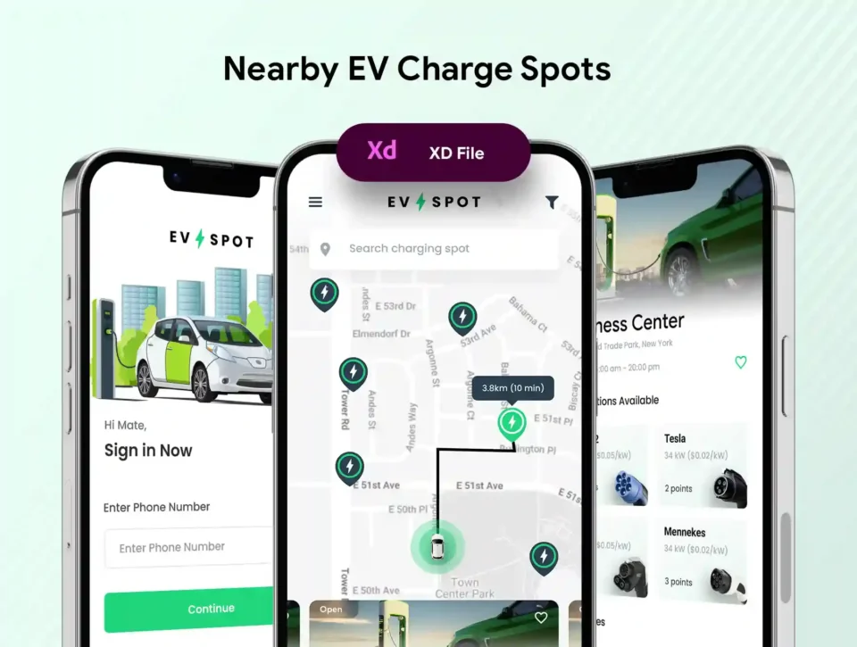 EV Charging Station Finder App UI | XD File | EV Spot