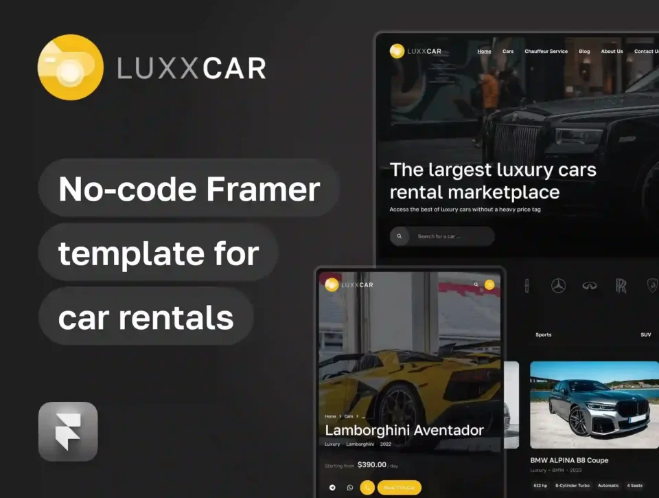 LuxxCar – car rental and auto dealership template for Framer