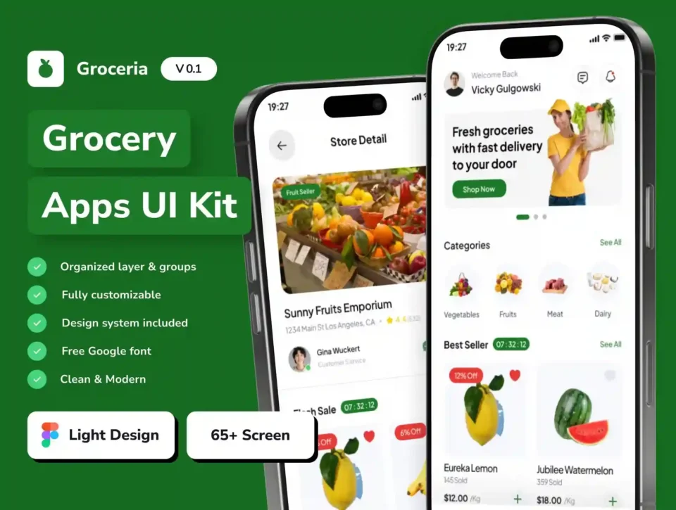 Groceria – Grocery Ecommerce Mobile App UI Kit