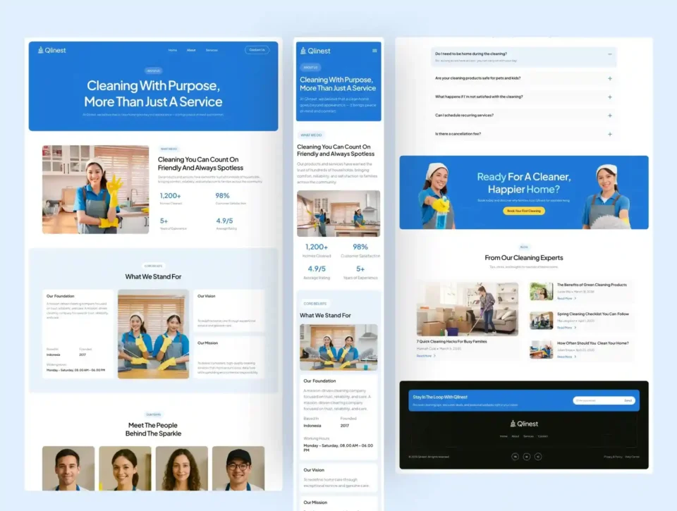 Qlinest – Home Cleaning Service Website UI Figma Template