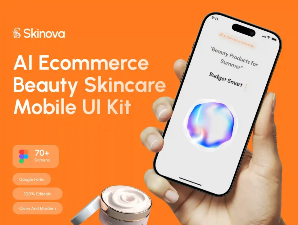 Skinova – AI Ecommerce Beauty Skincare Mobile UI Kit