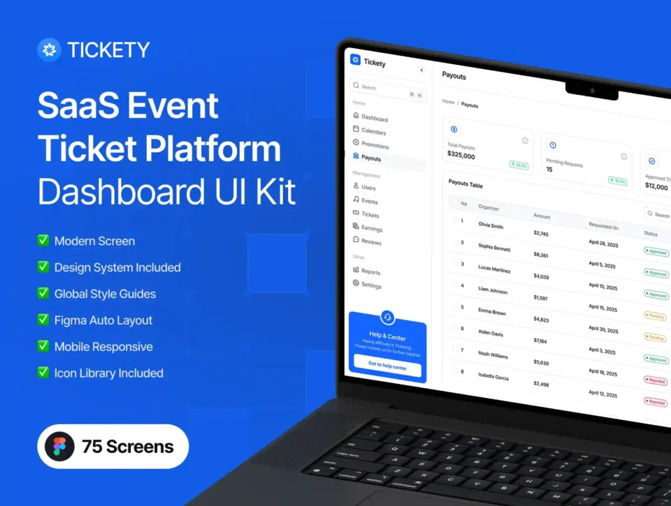 Tickety – SaaS Event Ticket Platform Dashboard UI Kit