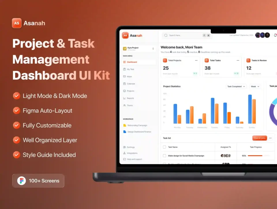 Asanah – Task Management Dashboard UI Kit