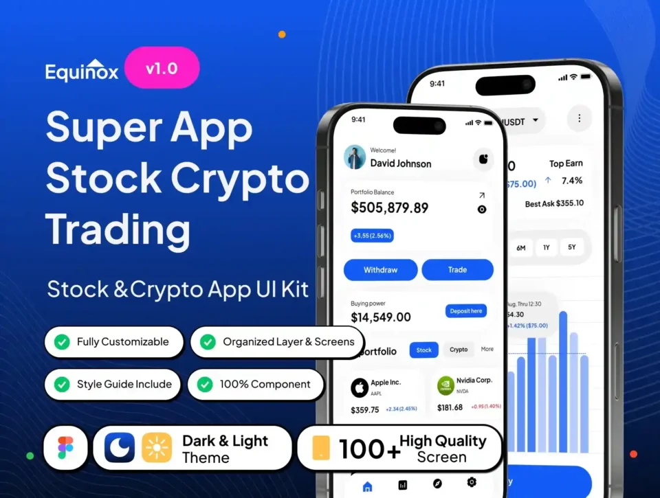 Equinox – Super App Stock Crypto Trading App UI Kit