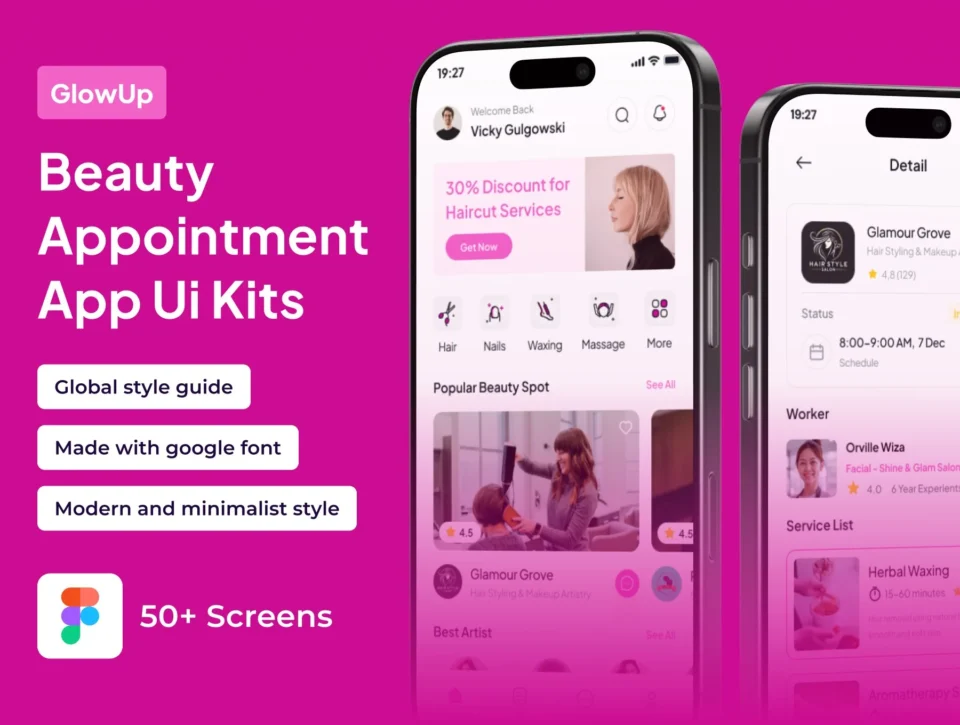 GlowUp – Beauty Appointment Premium UI KIts App